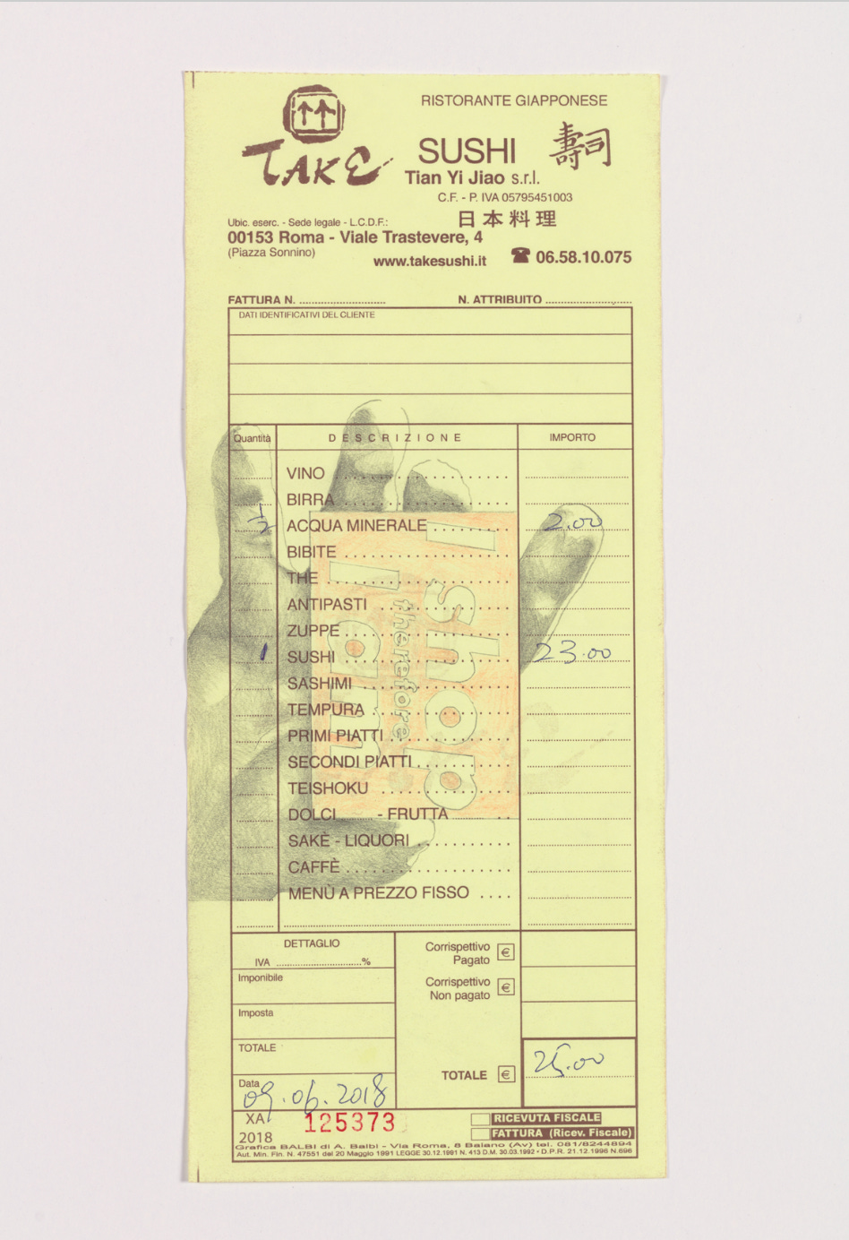 Buy Jonathan Monk dinner! The artist’s ongoing series directly negates the adage of a “starving artist”. The premise is brilliant in its simplicity: after a dinner out, Monk draws on the receipt and sells the artwork for the price of the meal.
