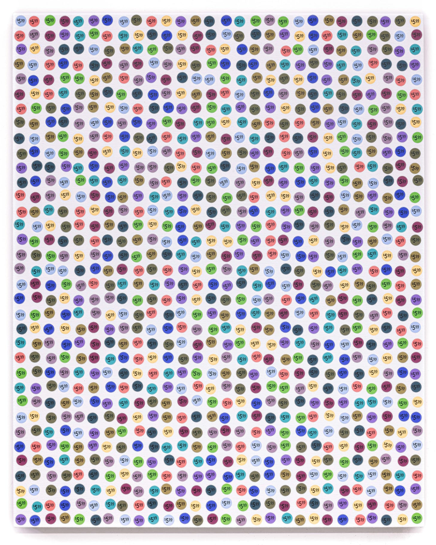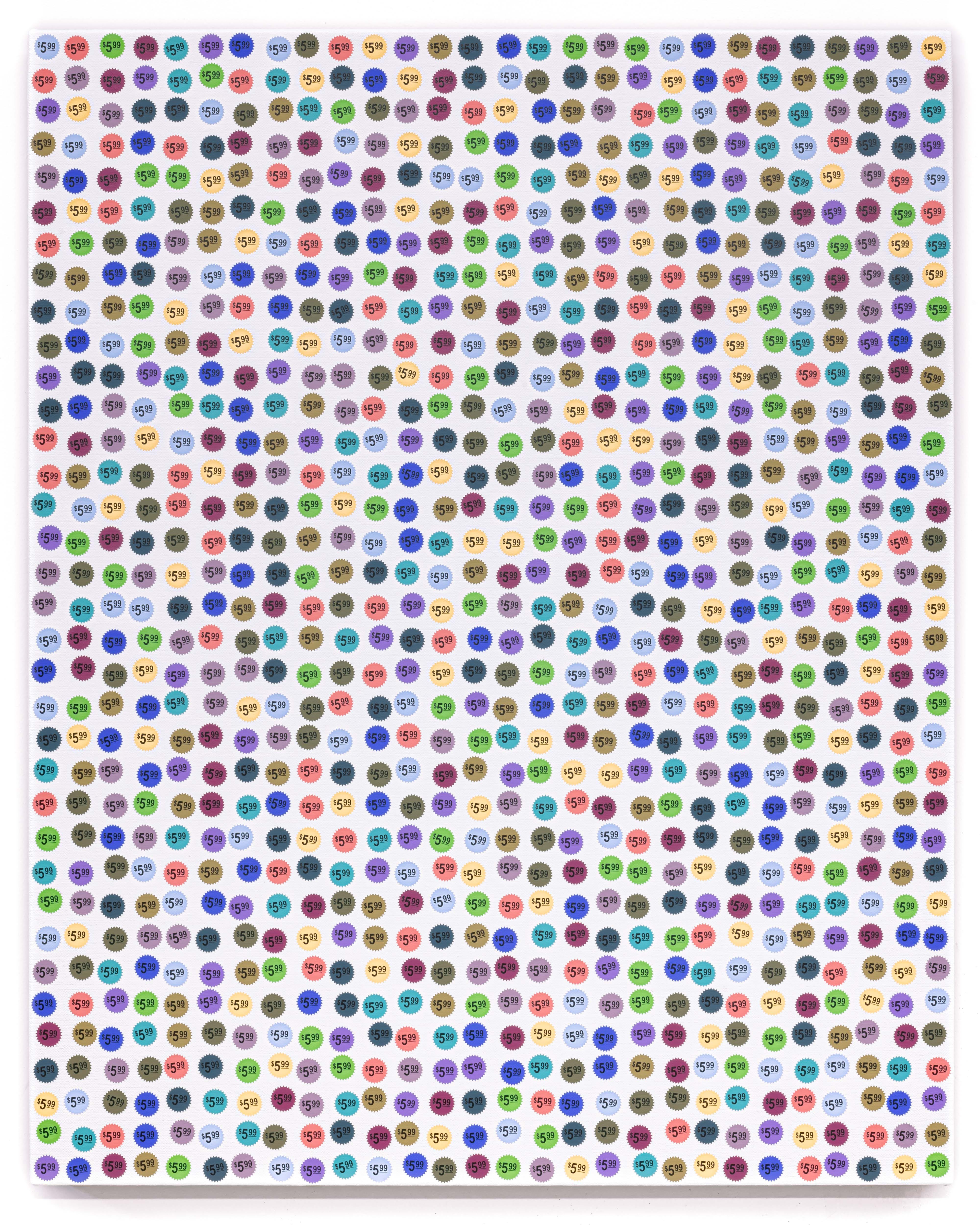 A playful series that uses the semiotics of price stickers to correlate with the price of a painting. Sean Weisgerber’s ongoing series, Price Per Square Inch, visualizes the business of art and the artist’s role as a worker.