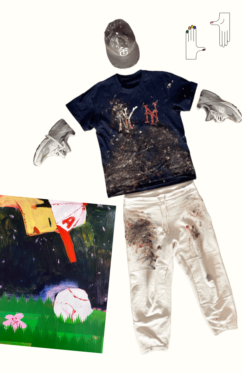 I don’t think there’s an essay that captures the phenomenon of regular people borrowing the aesthetic of artists as much as Roland Barthes’s “Dandyism and Fashion,” in which he unpacks the way that fashion codes compressed after the French Revolution, relying on a series of small details to differentiate social groups. “Sometimes [the dandy] relies on wealth to distance himself from the poor, other times he wants his clothes to look worn out to distance himself from the rich—this is precisely the job of the ‘detail’ which is to allow the dandy to escape the masses and never be engulfed by them,” writes Barthes. A modern-day version of this can be seen in a quick Google search: Maison Margiela paint-splattered sneakers for $995, the subtle paint markings of $770 Acne Studio jeans, or a t-shirt from Neighbourhood for $200 with built-in artist wear.
