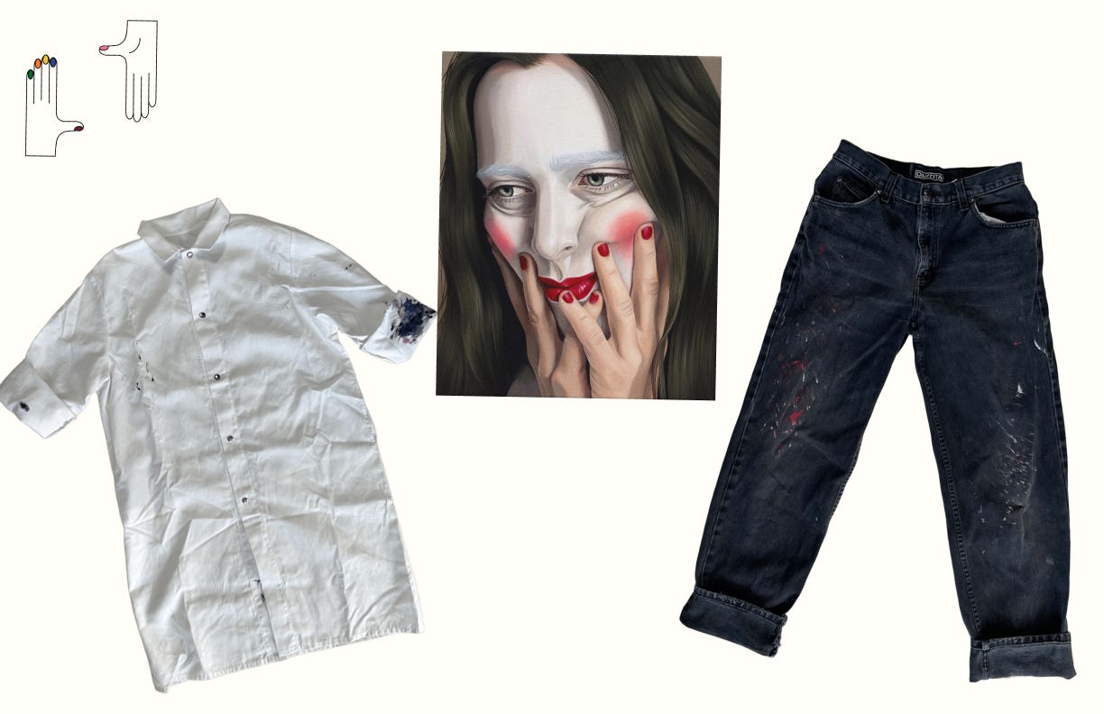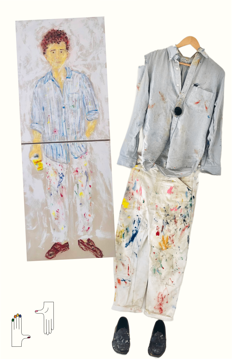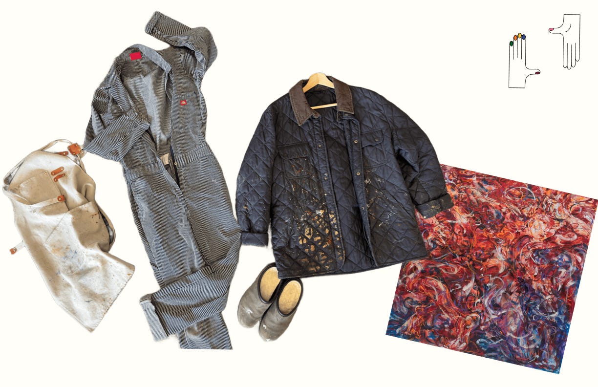 When out in public, the artist sheds their paint-soaked clothes for typical fare. Which is ironic, given the popularity of paint-splattered clothes sold to the general consumer. A clothing swap is taking place—with regular people adopting the artist's studio aesthetic. The Pinterest-ready Pablo Picasso quote comes to mind: “Every child is an artist. The problem is how to remain an artist once he grows up.” I guess one way to stay an artist is to dress like one.
